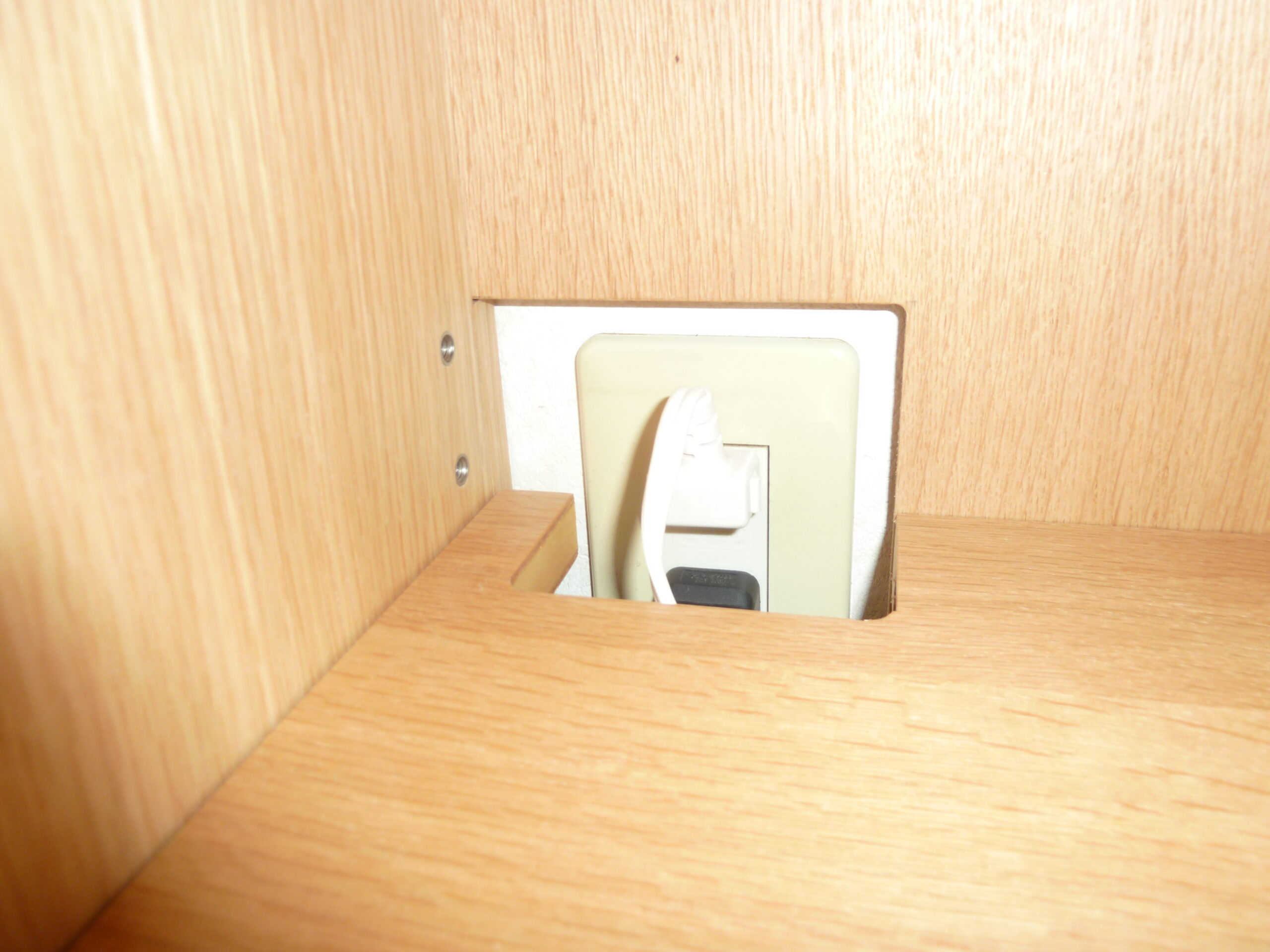 家電の使用を想定し、配線用のコード穴も最適な位置に配置。